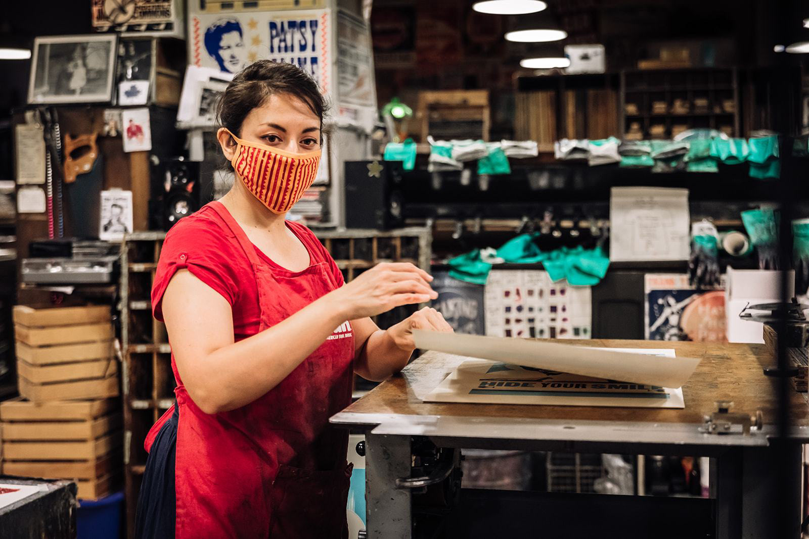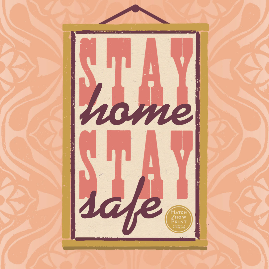 While stay at home orders were in place for COVID-19, Hatch Show Print sought out ways to keep in touch with the public and offer some encouraging words. I created some public service announcements for social media made up of scanned type and imagery from the Hatch archive. I also created a mask design for Hatch's retail store. I used borders and rules to make a textile-like pattern along with a past Hatch logo tucked in the corner, to avoid placement directly over the mouth.