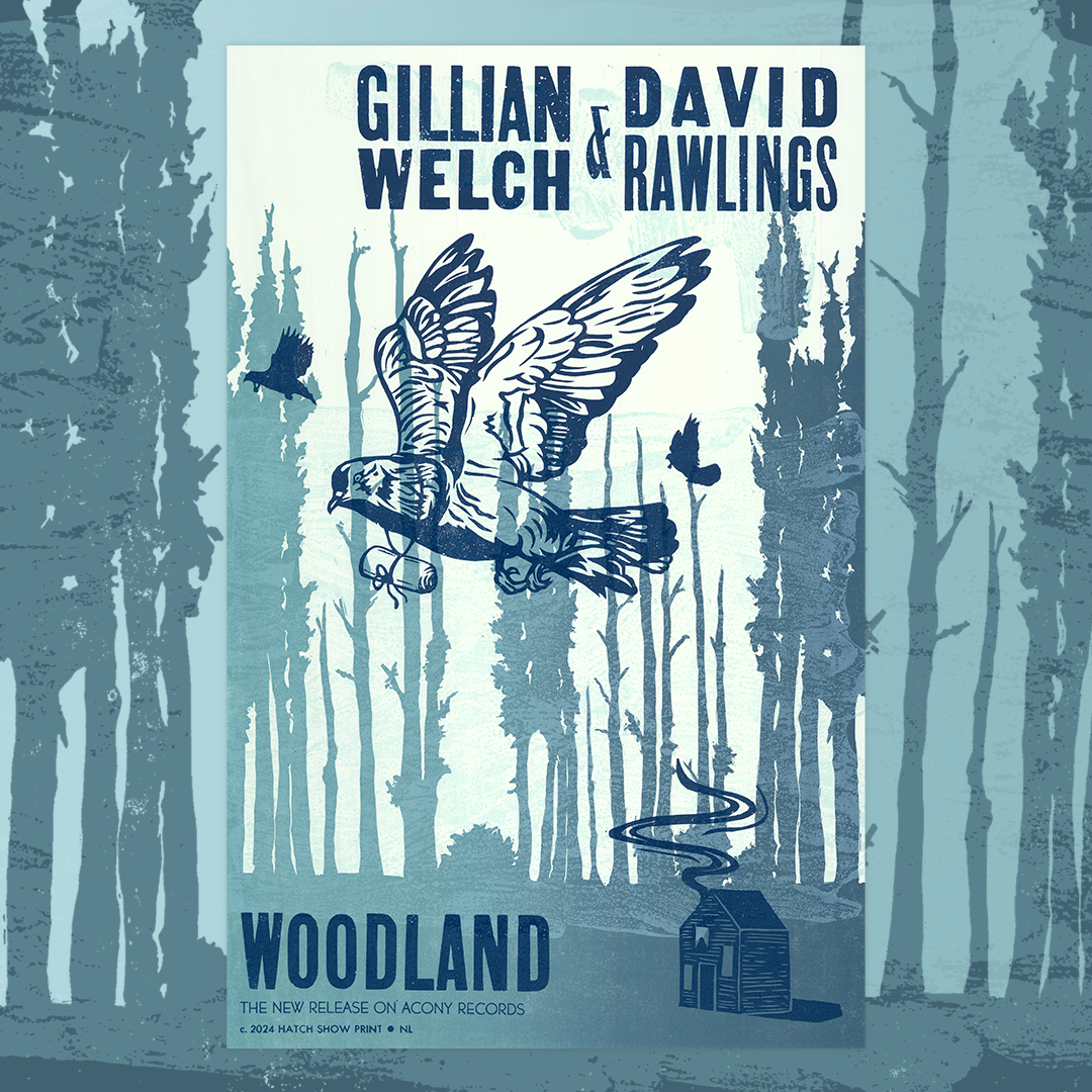 Gillian Welch & David Rawlings "Woodland" Album Release - 3 color poster with woodcut carvings